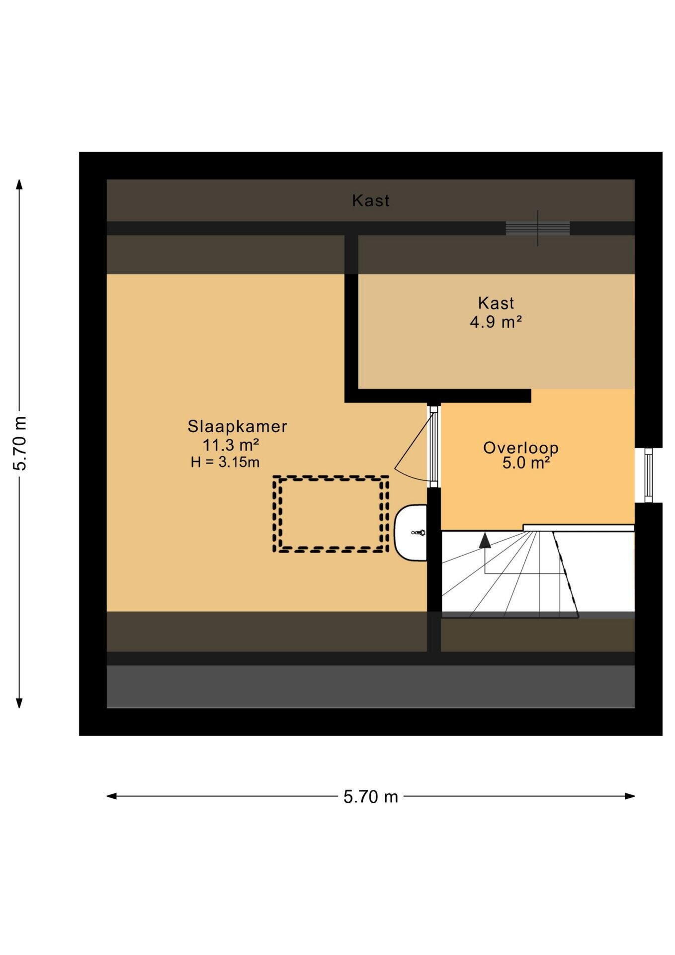 Ruime zolder met bergruimte en technische installaties, alsmede een vijfde slaapkamer van circa 11 m².